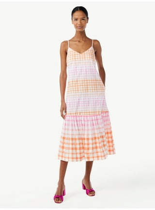 Juniors B Smart Spaghetti Strap Gingham Dress With Bow Back